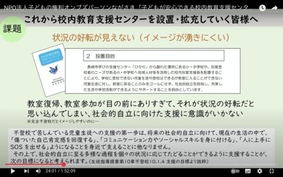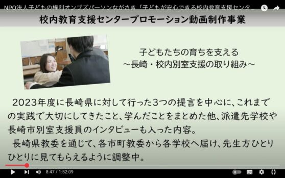 長崎県で、学校には行けるが、教室には入れない、又は普段は教室にいるけれど、時々しんどくなって避難したくなる子どもたちのために、学校と連携し「校内教育支援センター」事業を行っている『NPO法人子どもの権利オンブズパーソンながさき』さんの、オンライン報告会で、アカツキ永田が”聞き手”を担いました。